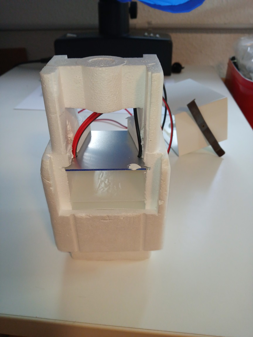 In order to fit the LED PCB and the additional diffusors it is necessary to cut out some foam parts of the original light box. You can see this in Fig. 2. Fig. 3. shows the assembly.