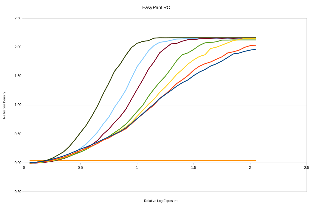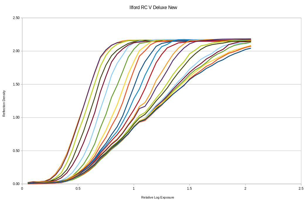 Calculating the possible gradations shows that an ISO R range from 55 to 160 has been achieved on the "Ilford Deluxe New" ... almost matching the datasheet values of Ilford :) However, a green LED of 530nm instead of 520nm will be used in my next tests.